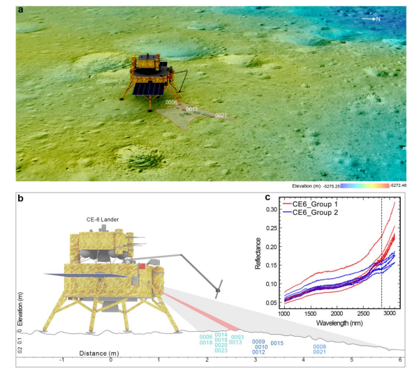 中国科学院国家天文台研究员李春来和刘建军团队,联合中国科学院上海技术物理研究所、美国夏威夷大学等的科研人员,利用嫦娥六号就位光谱探测数据,首次揭示了月表及次表层水含量和分布特征。